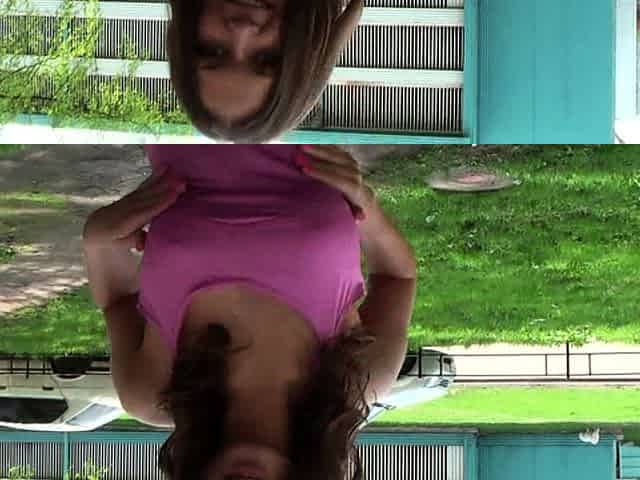 Tight ass kinky blode with big boobs masturbates outdoor