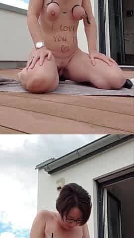 Pussy and ass fingering outdoors