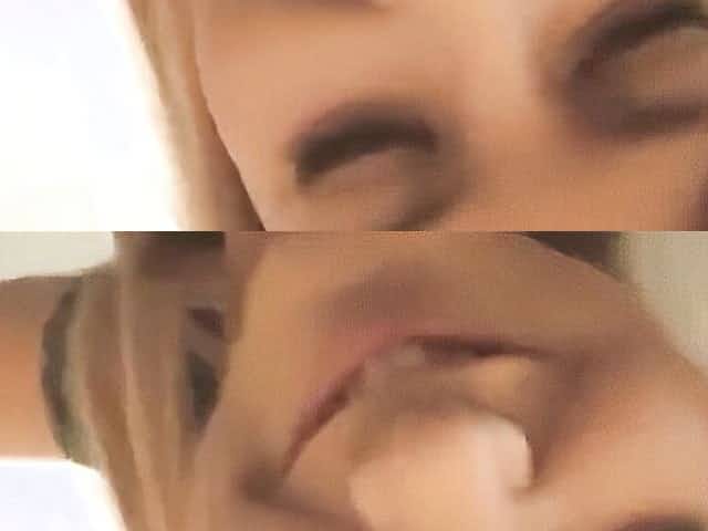 Cutie sucks on a hard cock and takes the cum in her mouth