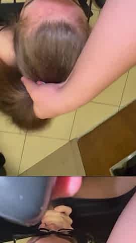 White floozy oral-sex in mall baths