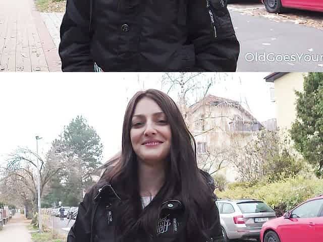 German Babe Sucks 2 Guys Outside Til They Cum in Her Mouth