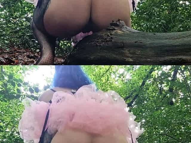 Cute Goth Fairy Pisses and Rubs Her Pussy on Treestump in the Forest
