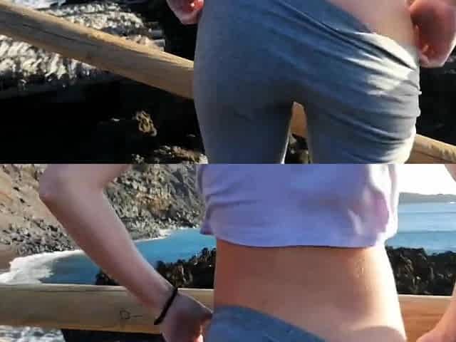 PAWG Stepsister lets Me Touch Her Large Butt in Constricted Leggings Public