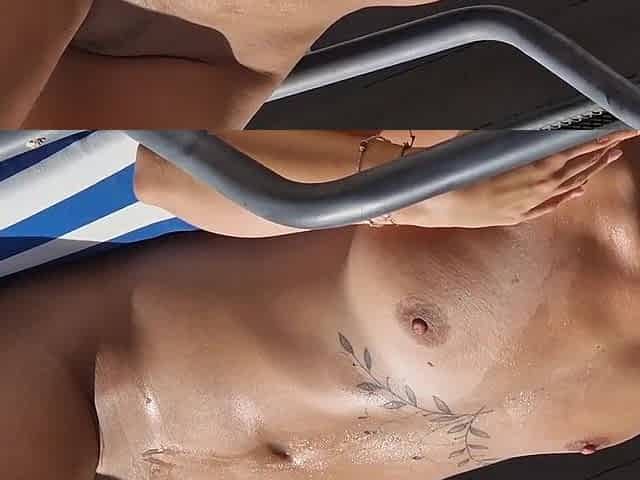 exposed woman on a hotel lounger