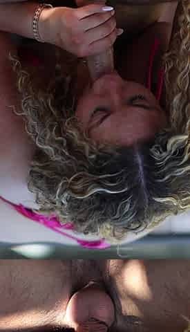 Big-Titted British Teen Gives POV Blowjob on a Beach