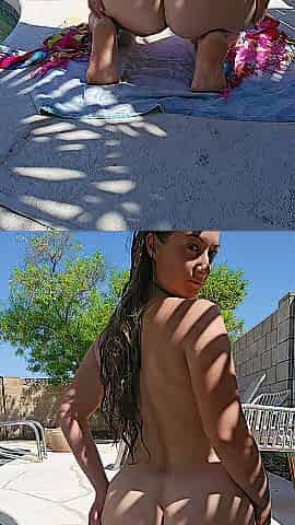 Hot poolside undress n shower