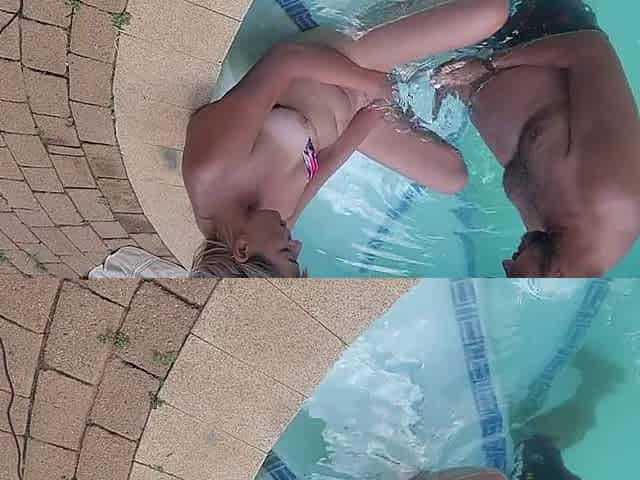 Busty milf goes skinny dipping and gets dicked down in a pool