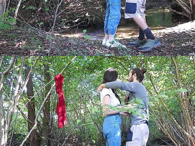 Coppietta trova un posticino nel bosco per una sveltina con sborrata interna!????
