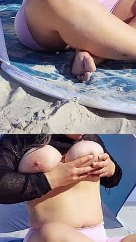 My Wife on the Beach Enjoying the Huge Cock of Her Friend's Son, Big Cumshots
