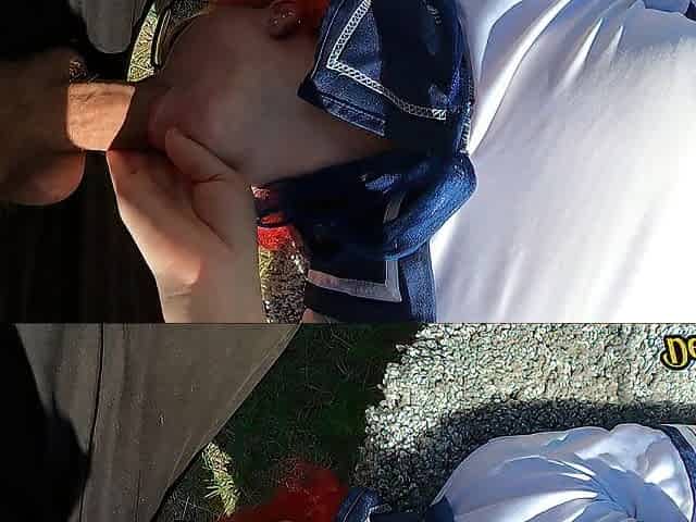 Blonde Amateur Takes Facial Outdoors In Public