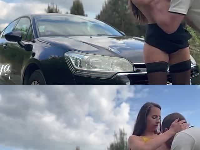 Pulled amateurs close up car sex