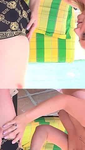 Small titted Briana toying herself poolside