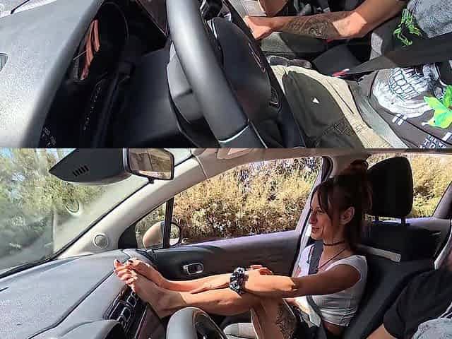 Autostoppista viene leccata dai piedi al culo prima di una sborrata anale outdoor