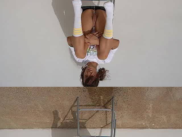 Destroyed butt peeing after wood tree anal screw