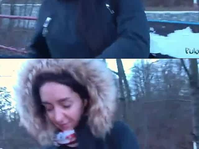 Hawt Pair Baise Hard Francaise Suce Une Grosse Bite Dans La Neige en fourrure