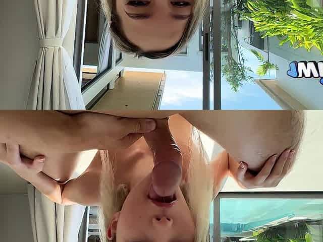 "My husband followed me here-lets give him a show"Cheating milf flashes cuck from hotel window