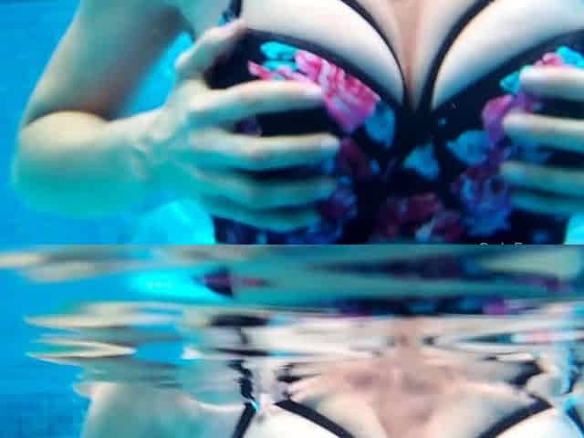 Small titted Briana toying herself poolside