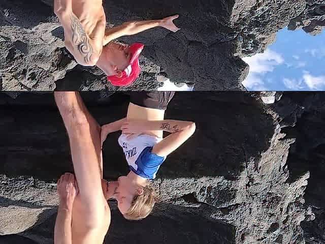 Blowjob outside at the beach by the rocks