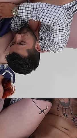 Tatoed bitch cocksucking 2 lucky dicks