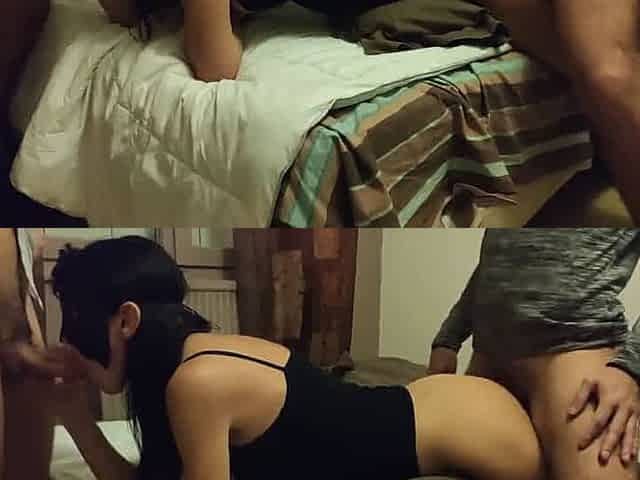 Cornudo prueba el sabor de la verga de mi'mante luego de cogerme