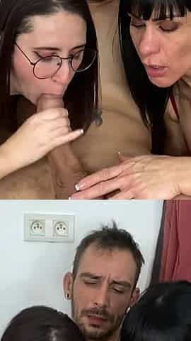 Amateur Homemade Threesome with a Blowjob and Facial