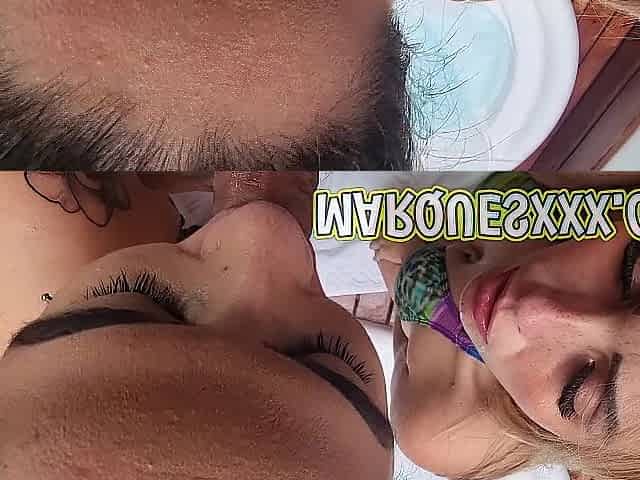 Public double facial after banging spouse and ally at the beach