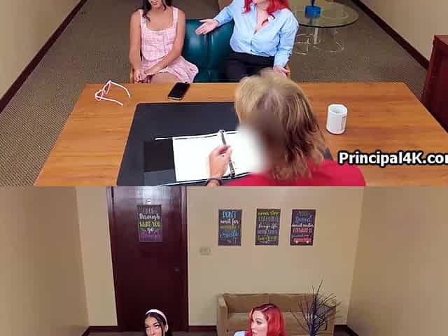 Teacher and exotic coed milks principal