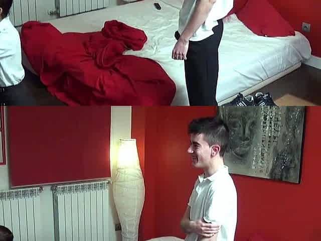 Amateur teen in threesome sucking cocks in dorm room in hd