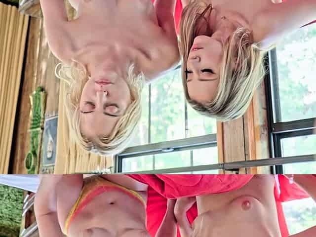 Mis vecinas cachondas se están duchando en el patio. Debo ir allí para verlo de cerca