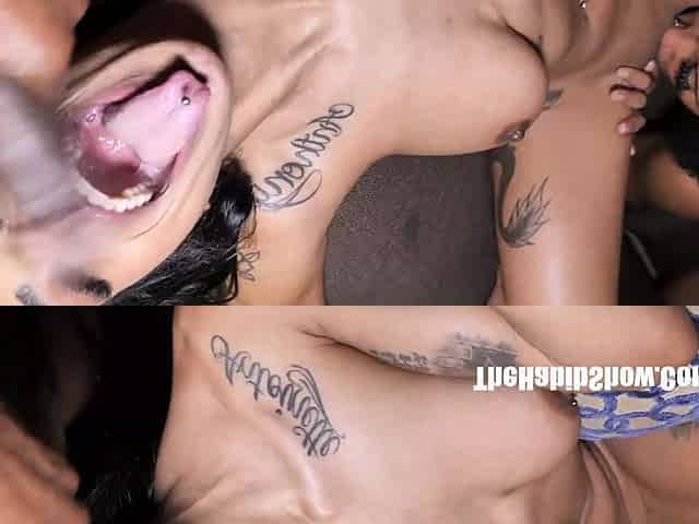 She sucks them deep before the spitroast her