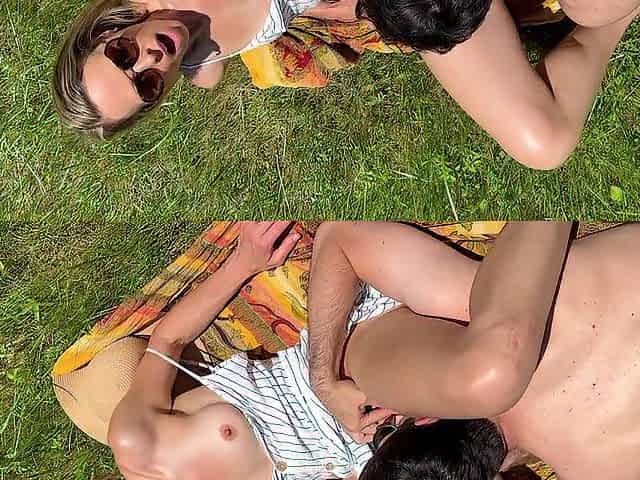 Spouse watches wife in suit bang and get creampie from his ally in public field