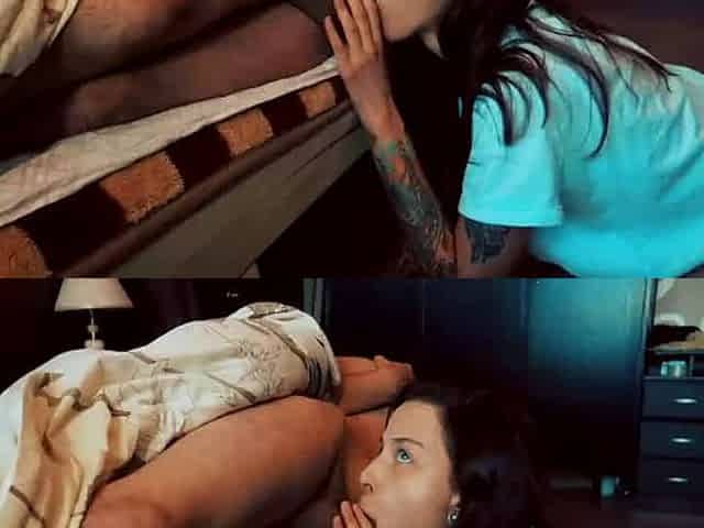 Wife and spouse filming nice-looking excitement home movie scene with erotic underware
