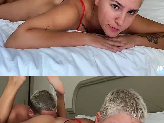 Husband Wakes up Before Wife and Starts to Lick Her Shaved Pussy Which Makes Her Moaning Loud