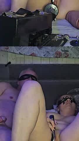 Horny Amateur MILF Watching Porn and Get Her Pussy Fuck with Huge Dildo Attached to Fucking Machine