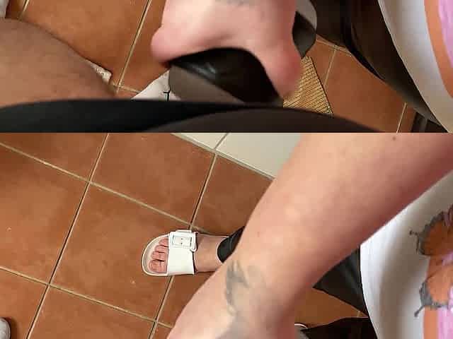Very worthy footjob in the flip flop large cum