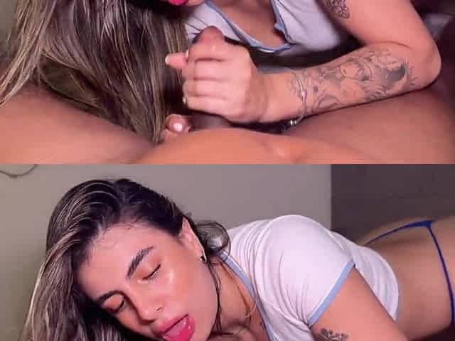 Wife Watches as Stepmom Gives Deep Blowjob and Swallows Cum