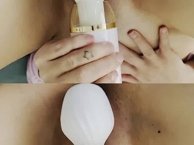 Wife gets her vagina drilled by large vibrator on edge of tub