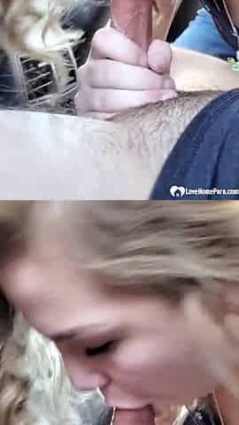 Enjoying some head from a teen cutie in the car
