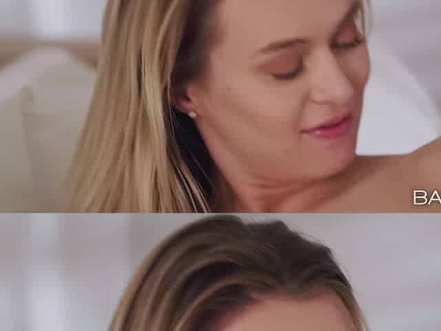 Amazing platinum-blonde offers vulva and culo to promiscuous Barbara Alves in killer XXX scene!