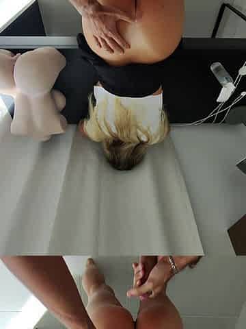 BBW Dildo Squirt and Farting on Table