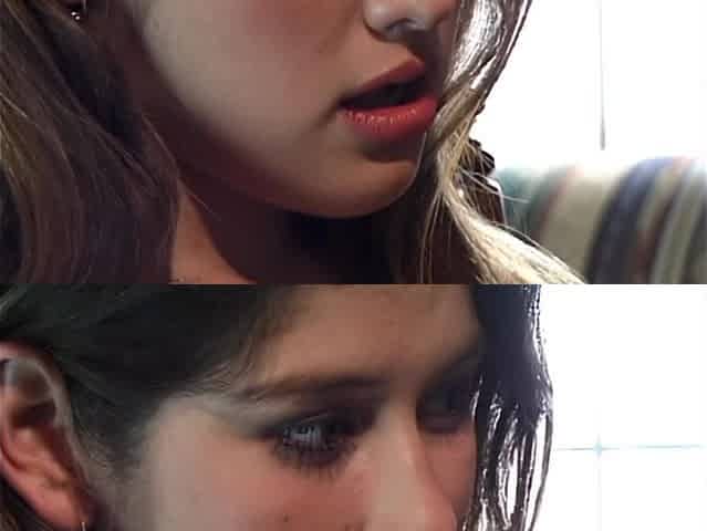 Cute 18-year-old girls Thalia and Felipe share a passionate lesbian kiss