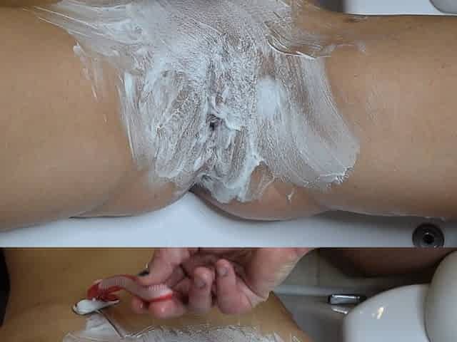 Shaving a Very Hairy Pussy with a Trimmer and a Razor with Shaving Foam!