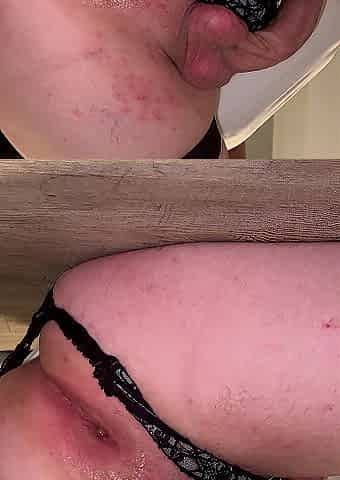 Travesti en minifaldas y medias de red disfrutando sextoy.