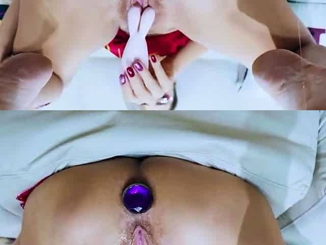 Brunette toys her pussy and ass on cam
