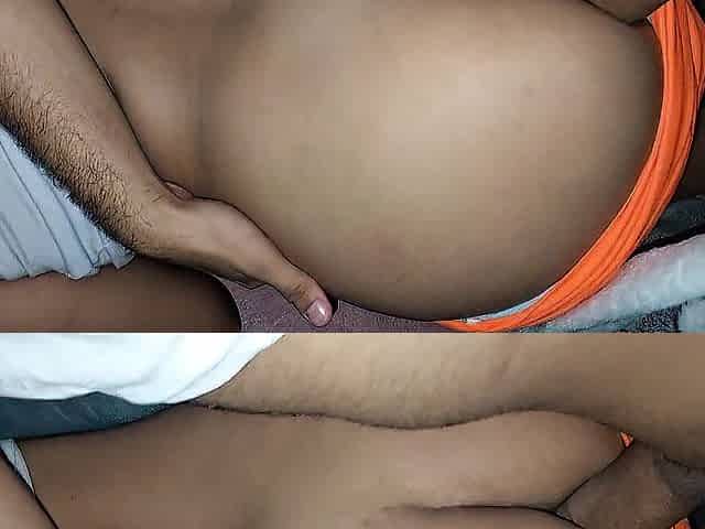 Hermanastra se clava en mi polla en cucharita, sexo anal a escondidas