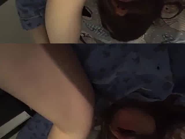 Pequeña hermanastra despierta a su hermanastro mayor para chuparle su polla y tragarse su leche.