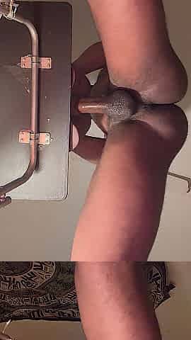 Insane Sissy Gooner Giant Anal Creampie and Banged in the Booty with 2 Brown Dildos