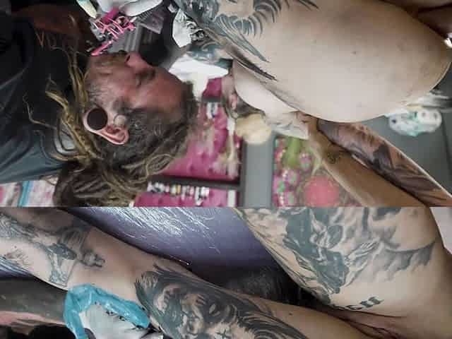 Stunning Tattoo Babe with Big Tits enjoys ANAL fuck while getting a Tattoo - ATM&Gaping