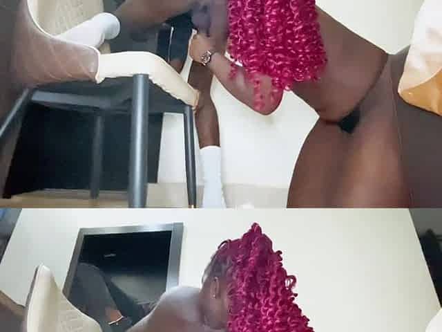 Sissy rides her large ebony sex-toy like a real doxy