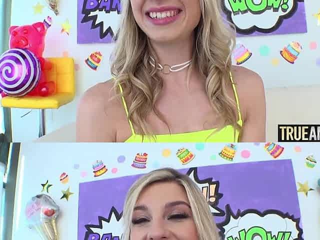 Platinum blonde babe Kimber Delice auditions for anal sex